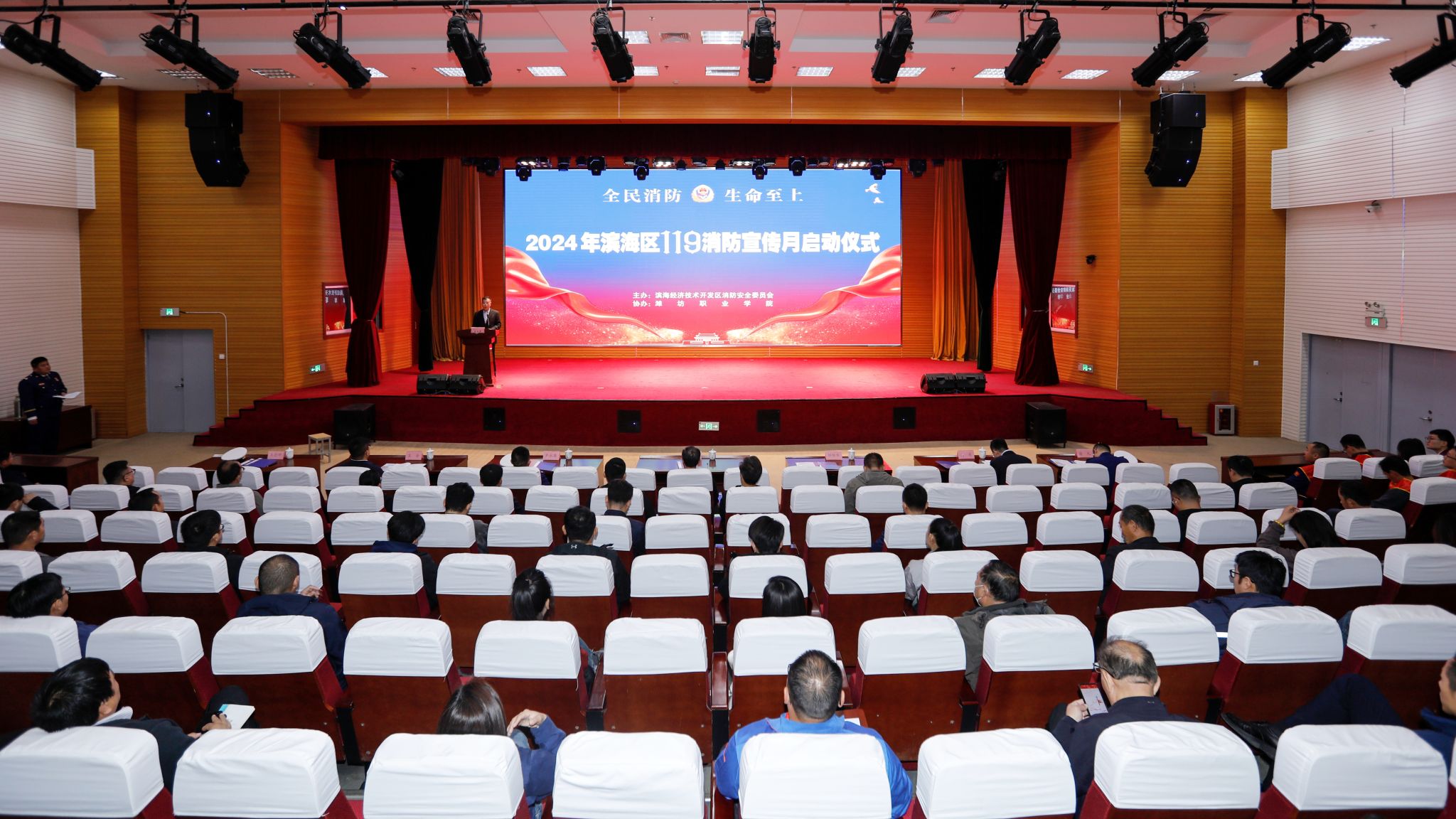 11月8日上午,2024年滨海区“119消防宣传月”活动启动仪式在我院滨海校区举行。区党工委副书记、管委会副主任张振城,市消防救援支队党委委员、副支队长吴永康,区应急管理局党委书记、局长王金,区党群工作部副部长马东、区消防救援大队教导员王德帅、大队长潘元,学院党委委员、副院长任培华出席活动。滨海区消安委成员单位、各街道园区分管负责同志及全区消防安全重点单位等260人参加启动仪式。