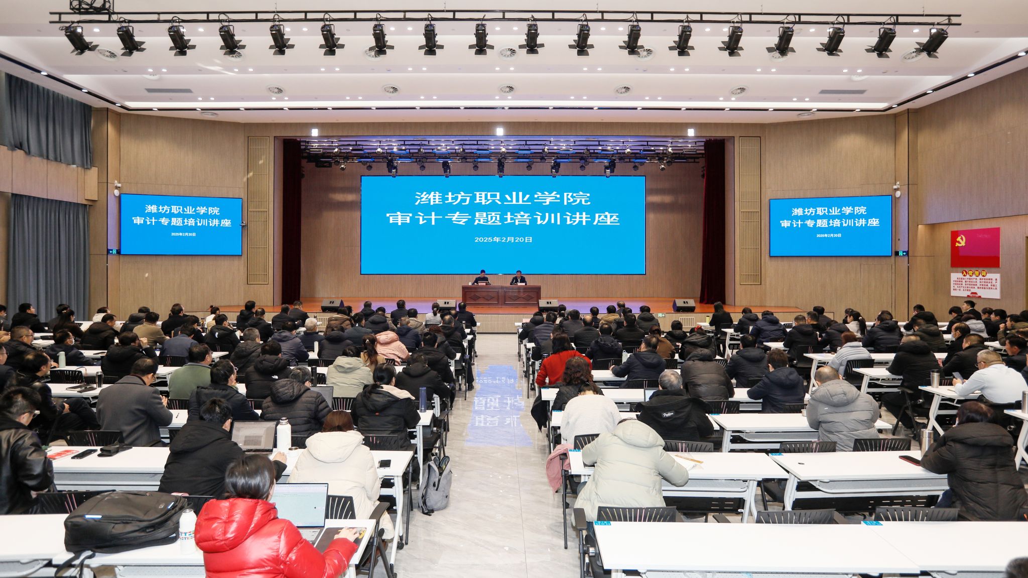 2月20日下午,为深入学习贯彻习近平总书记关于审计工作的重要讲话和重要指示批示精神,更好落实《审计法》《党政主要领导干部和国有企事业单位主要领导人员经济责任审计规定》等法律法规,学院邀请潍坊市审计局高级审计师陈晓庆作“经济责任审计制度介绍和高校经济责任审计案例交流”专题讲座。学院领导班子成员、各职能部门及二级学院副科级及以上领导干部参加,学院党委副书记韩瑞东主持。
