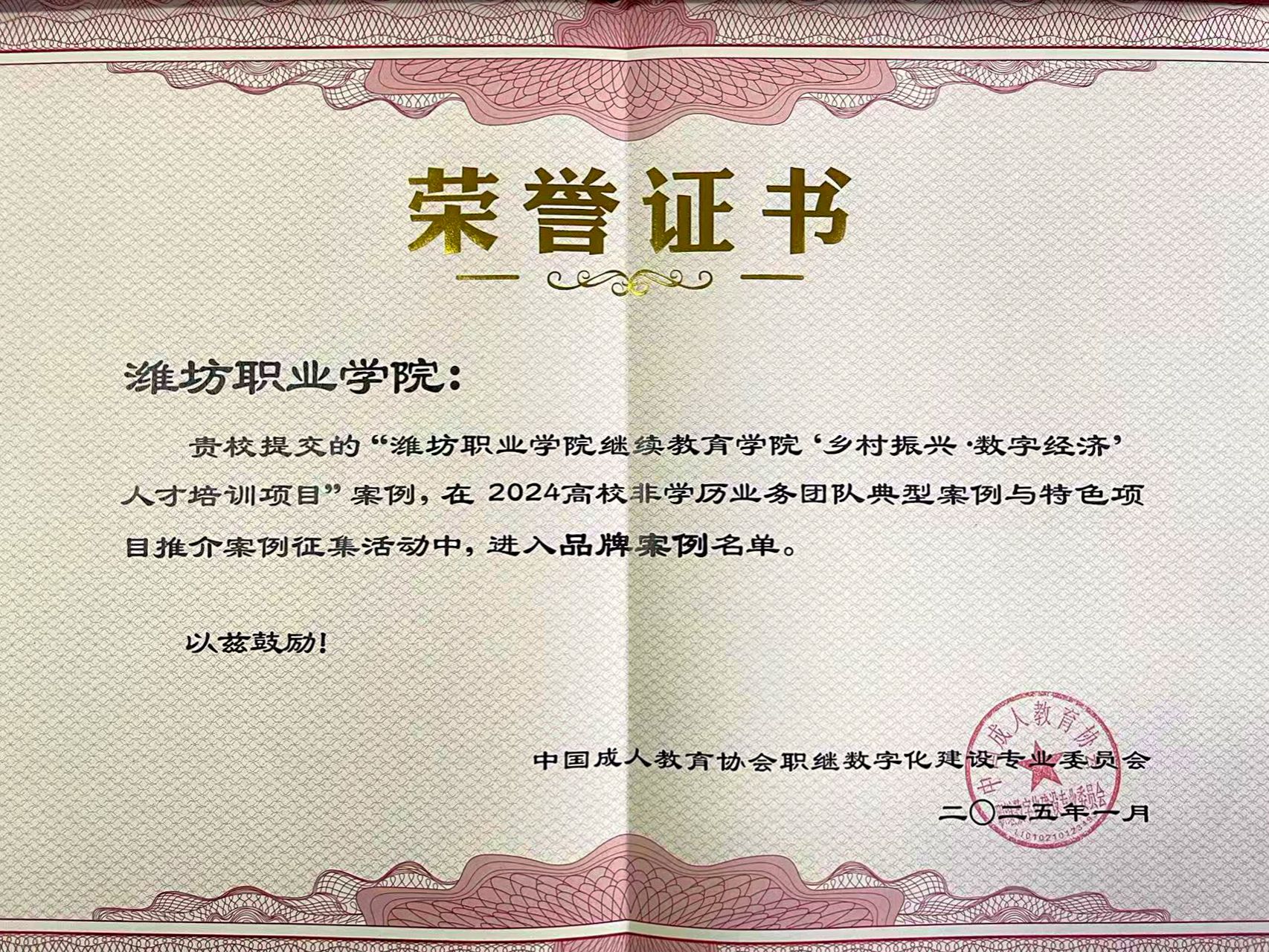 《潍坊职业学院继续教育学院“乡村振兴·数字经济”人才培训项目》荣获高校非学历业务品牌案例