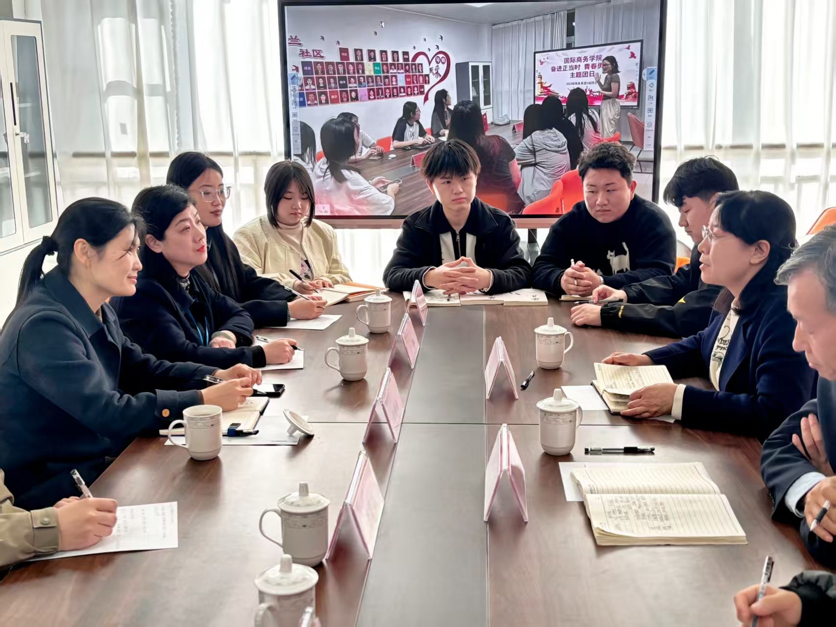 师生座谈会上,国际商务学院党总支负责人从蕙兰社区工作特色、辅导员队伍建设、学生管理、问题反思四个方面作了详细汇报,与会师生围绕“新时代学生管理创新”“辅导员职业发展路径”“学生成长成才需求”等主题畅所欲言。