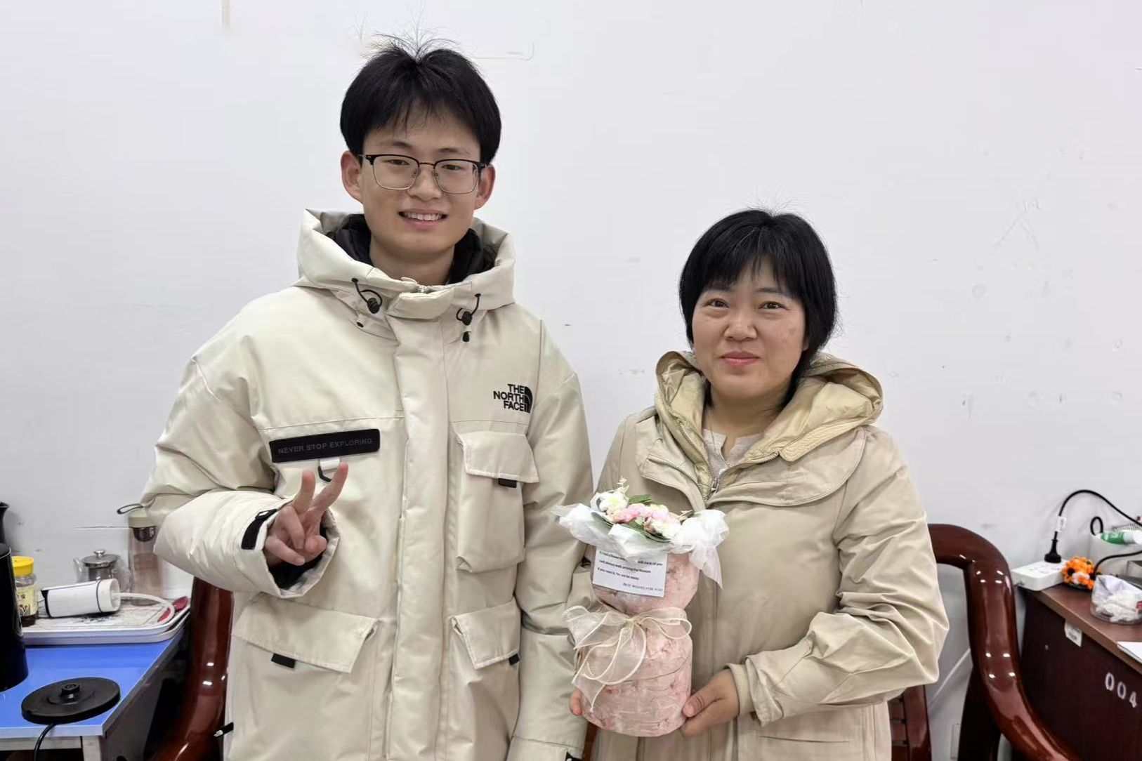 清晨的校园还氤氲着薄雾,学生代表已手捧精心准备的鲜花与贺卡静候恩师。当女教师们步入教学楼时,此起彼伏的“老师节日快乐”让走廊瞬间充满暖意。每支康乃馨都系着学生手写的祝福笺,既有“三尺讲台育桃李,一支粉笔写春秋”的诗意礼赞,也有“愿您身体健康,天天开心”的暖心祝福。青年教师朱老师捧着花束感动地说,“看到孩子们将传统书法与现代插花结合的手工贺卡,真切感受到德育的种子已在他们心中生根发芽。”
