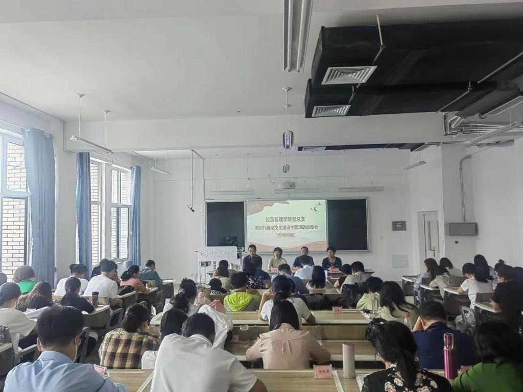 为深入学习贯彻党的二十大精神,将廉洁文化、廉洁教育融入校园文化,深植清廉基因,5月18日下午,经营管理学院党总支在智泽2号楼B312开展主题教育活动,经营管理学院党总支负责同志主持,全体教师参加。