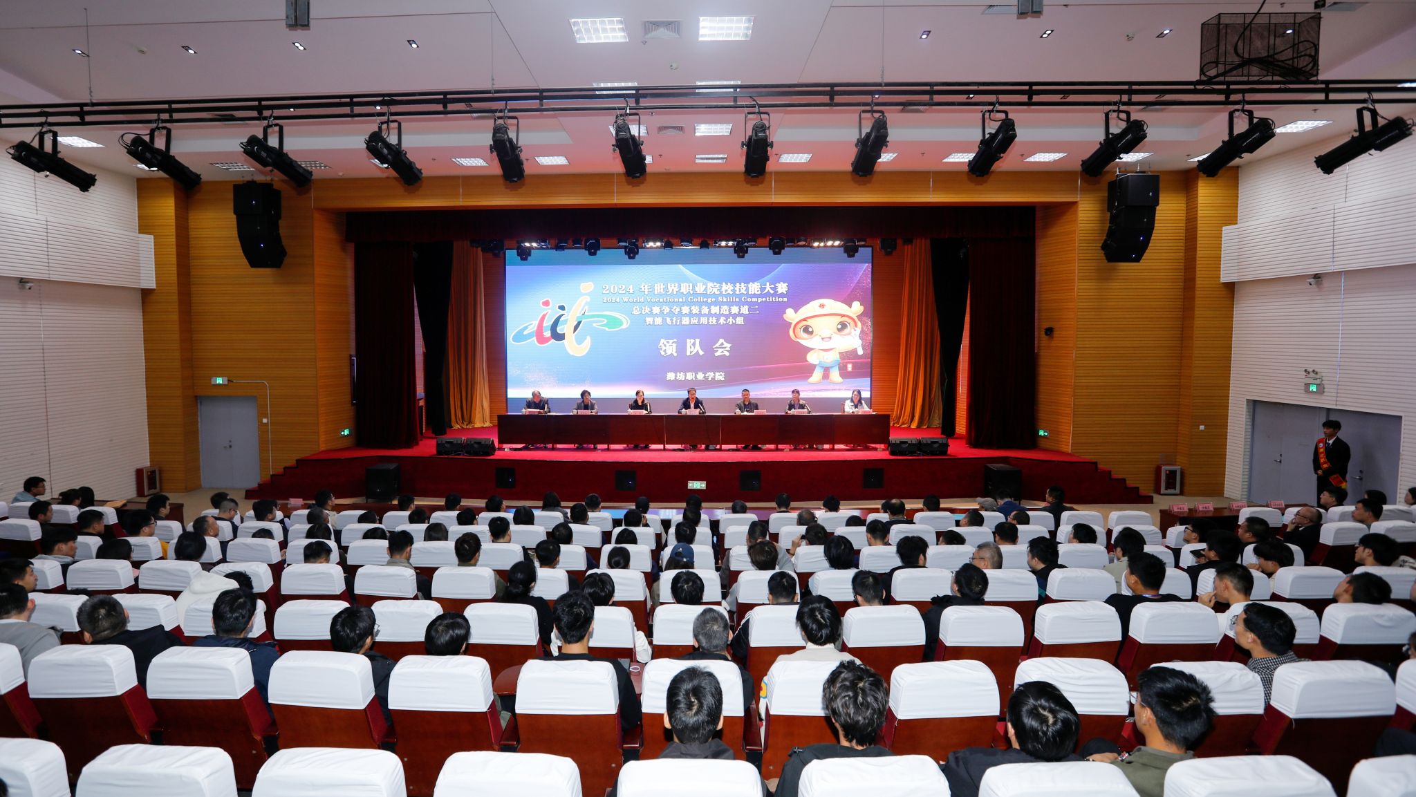 2024年10月26日下午,2024年世界职业院校技能大赛(高职组)“智能飞行器应用技术”赛项在我院滨海校区图书馆揭开帷幕。该赛项共有来自全国各地59支参赛队,206名参赛选手参加比拼。智能飞行器技术小组裁判长,裁判巡视员,仲裁工作组组长,纪律监督工作组组长,赛事组委会副主任,潍坊职业学院党委委员、宣传部负责同志,潍坊职业学院机电工程学院负责同志出席开幕式。机电工程学院负责同志主持会议。