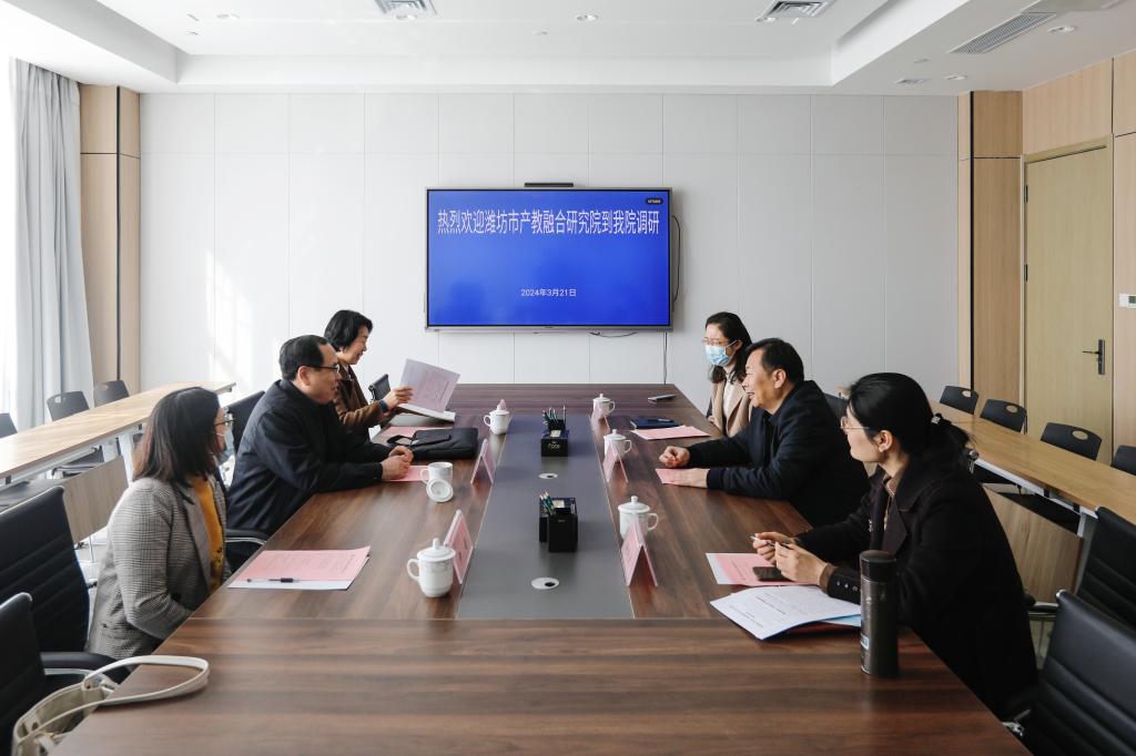 3月21日上午,潍坊市产教融合研究院副院长马玉才、教研员杨继红、尹婧一行三人到我院调研校企合作、产教融合工作,重点调研学院关于市域产教联合体和行业产教融合共同体建设。学院党委委员、副院长贺志强会见客人,科技处(产学研合作中心)负责人及市政协委员、化学工程学院张莉博士参加座谈交流。