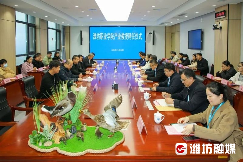 潍坊日报社潍坊融媒讯 近日,潍坊职业学院举行了产业教授聘任仪式,潍坊市鑫羽源文化艺术有限公司总经理张荣军等六位高水平技能人才凭借他们在各自领域的杰出贡献和深厚造诣,被学院正式聘任为产业教授。此次聘任不仅是对高技术人才专业能力的认可,也是潍坊职业学院在推动产教融合、促进文化传承与创新方面迈出的重要一步。