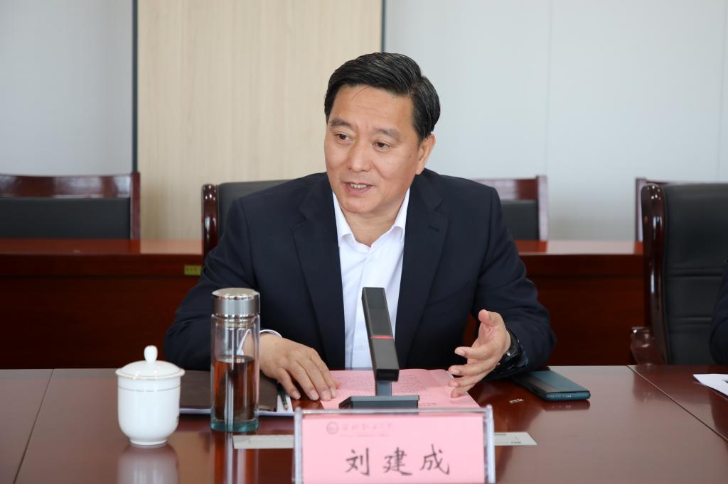 刘建成致辞,他指出学院将高标准打造“产教科创服”五维一体的高端装备产教融合示范实训基地,依托行业重点企业联合重构精密加工专业课程体系,打造专业教学资源,开展智能控制单元集成、智能制造产线装调等大型智能控制仿真教学与培训服务;引入全国工商联人才中心专家,打造一支由名师名匠领衔,德高技精、国际视野、专兼结合的双师团队;打造集生产实训、教学科研、成果转化、社会服务于一体的示范性产教融合实训基地;共建潍坊市高端设备共享服务中心,搭建技术改造应用先进装备的供需对接平台,促进中小企业提质增效,服务民营企业技术研发和产品升级需求。