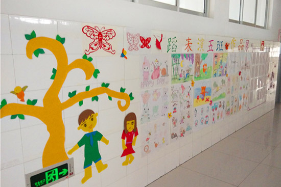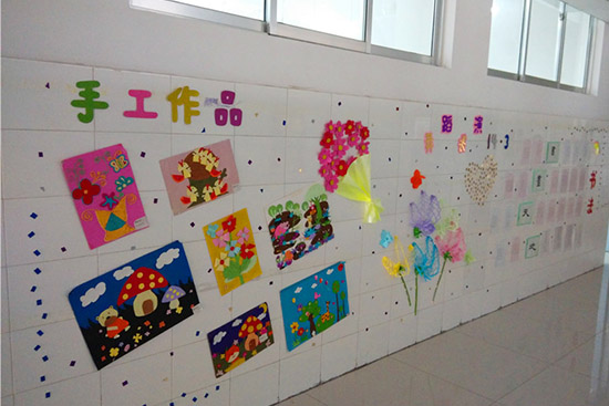 学生们用自己智慧的头脑和灵巧的双手打造了一面面主题突出、色彩鲜明、富有特色的文化墙。每班选取的素材,都是本班级的优秀作品,从手抄报到手绘画,从剪纸到手工制作,从书法到日常生活照片,这些素材的选取和制作都是学生独特构思和精心设计的。
