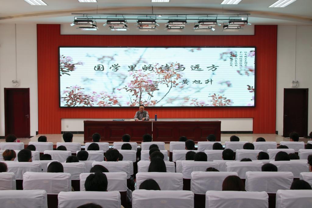5月20日,学校第67场人文素养讲座在滨海校区清泽楼报告厅举行,潍坊市寒亭区作家协会名誉主席黄旭升为同学们作了一场题为“国学里的诗与远方”的精彩讲座,滨海校区近300名师生聆听了讲座。