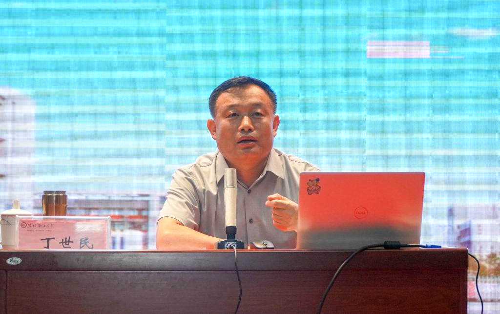 学校丁世民教授作了题为“提质培优背景下高水平双师教师建设的思考与实践”的报告,他结合新形势下职业教育对教师队伍建设的新要求,阐述了团队建设和团队成员提升的路径,报告充分体现了一个从教35年的教育工作者深厚的教学功底、拳拳的育人之心和甘为人梯的“红烛”精神,令大家受益匪浅、深受感动。随后,培训学员参观了学校实训室。