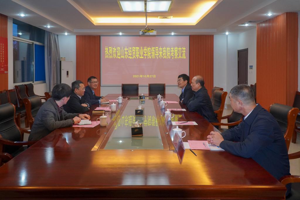 10月27日下午,山东经贸职业学院党委书记王志勇一行3人来我院考察交流。学院党委书记马跃启会见客人,党委委员、副院长刘德强,基建处主要负责同志陪同考察交流。