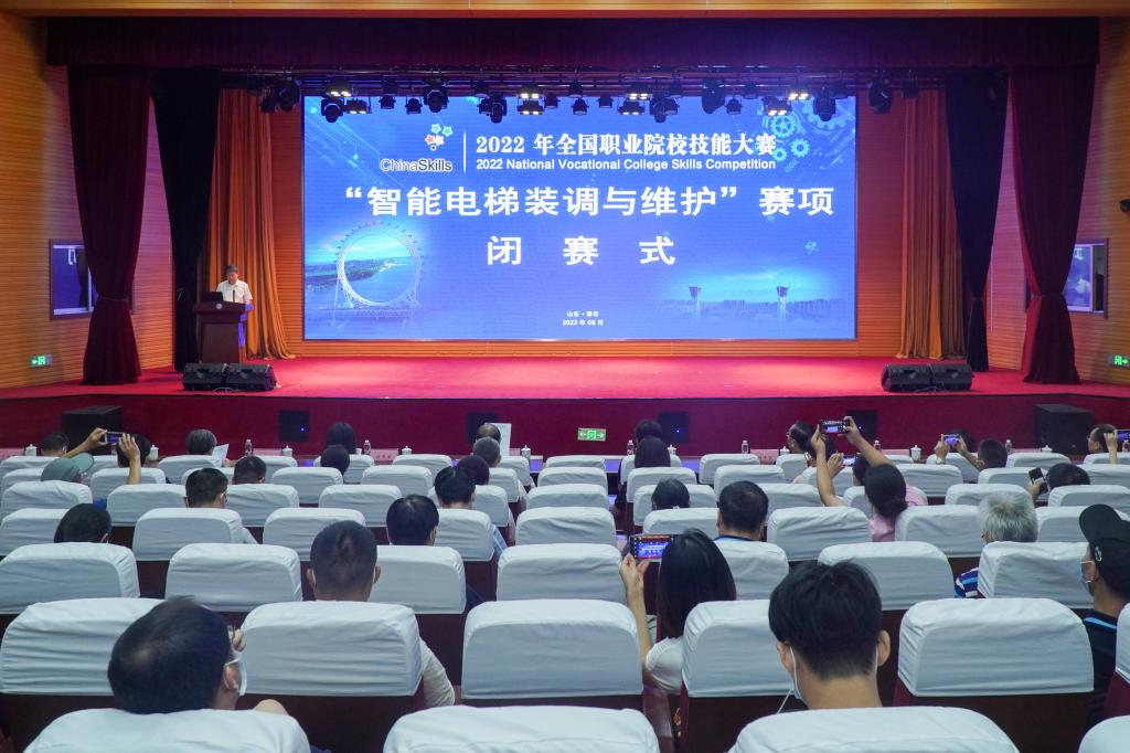 8月21日上午,2022年全国职业院校技能大赛高职组“智能电梯装调与维护”赛项闭赛式在我院滨海校区图书馆报告厅举行。赛项执委会副主任、机械行指委委员曾照香,教育部职成司院校处干部刘青宜,赛项专家组组长雷云涛,赛项裁判长张林国,赛项监督仲裁组组长李宁,浙江拓峰自动化设备有限公司副总经理张星耕潍坊市教育局副局长任秀洁,山东(潍坊)公共实训中心主任邵长山,潍坊市教科院职业教育教学研究科科长王述新,潍坊职业学院党委书记马跃启,党委委员、副院长李瑞昌出席会议。各参赛队领队、指导教师、参赛选手以及新闻媒体等200余人参加会议。党委委员、副院长李瑞昌主持会议。