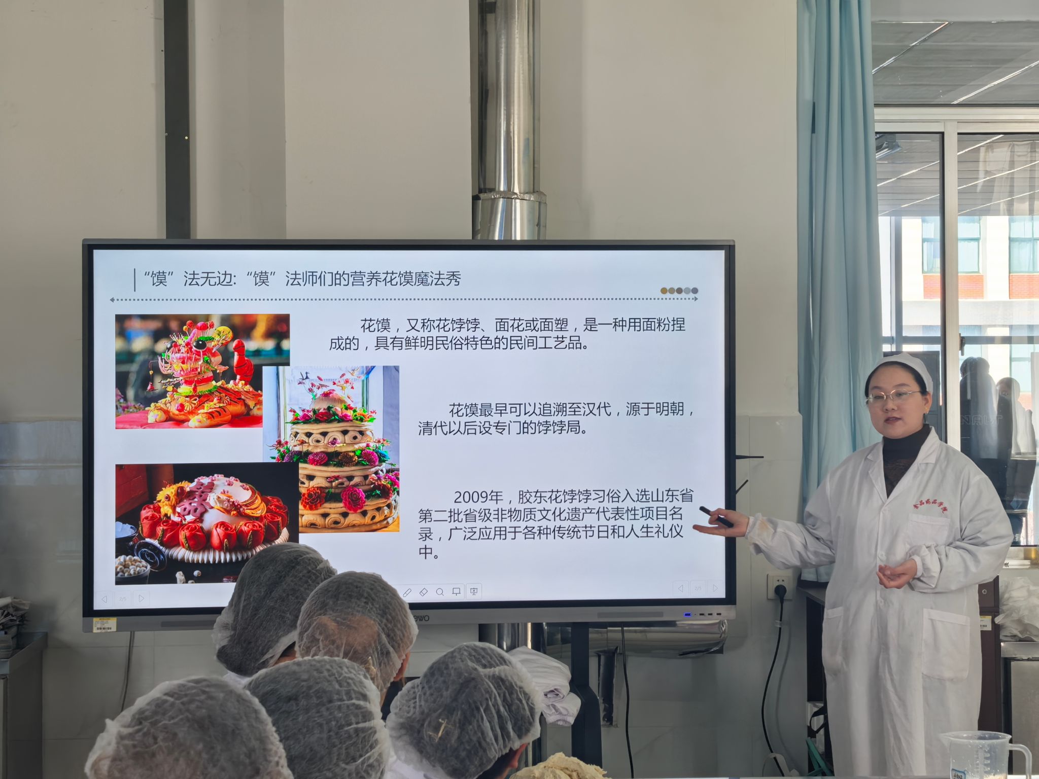 活动邀请专业老师向同学们详细介绍了花馍这一传统美食的历史渊源和文化内涵,讲解了花馍的制作流程,并进行了现场示范。12支参赛团队通过切、揉、捏、揪、挑、压、搓、拨、按等手法,配上剪刀、切刀等工具,将传统文化融入作品,做出了迎蛇年花馍、熊猫花馍、馍韵醒狮等创意花馍作品。经过现场评审和网络评选,最终信息工程学院《荷塘月色》获一等奖,食品药品学院《瑞兔福馍》《新年新禧,丰饶满仓映华年》获二等奖,食品药品学院《熊猫花馍》《馍韵醒狮》、经营管理学院《锦绣富贵仙桃馍》获三等奖。