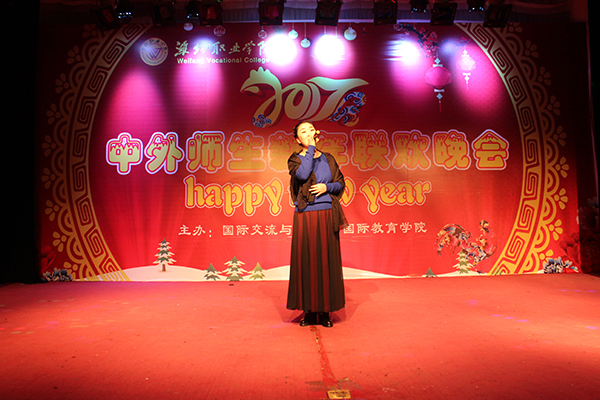 12月27日晚,我院2017年中外师生新年联欢晚会在奎文校区报告厅举行。奎文校区办公室、五年制高职部、国际交流与合作处的相关负责同志,以及新加坡商会驻潍企业代表、美国外教及中外师生500余人欢聚一堂,共同观看了晚会演出。