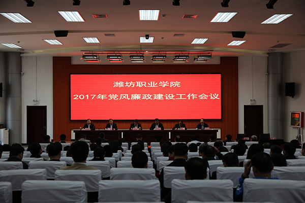 张洪全就今年学院的党风廉政建设工作提出了六点要求:一是坚守政治信仰,提高政治站位,把准政治方向,牢固树立“四个意识”特别是核心意识、看齐意识,坚持政治原则,严守政治纪律和政治规矩。二是扎实开展“作风建设年”活动,制定学院开展“作风建设年”活动实施方案,努力营造团结实干、拼搏奉献的浓厚氛围。领导干部要以身作则、率先垂范,带头改进作风。三是坚持将纪律挺在前面,注重抓早抓小,集中开展重点领域专项整治,完善制度狠抓落实,加强党委对党风廉政建设的领导,加强“一岗双责”责任落实。重点结合省委巡视组反馈整改问题、市审计局审计整改问题,确保整改到位,落实到位。四是严格执行民主集中制,严格落实“三会一课”、民主生活会、领导干部双重组织生活、民主评议党员等制度,充分发挥党员干部的自律意识和表率意识。五是全面落实监督责任,强化“一把手”监督,抓住关键少数,强化上下级之间、同级之间和师生与干部之间的监督,构建全方位、全过程、立体化的监督体系。六是坚持不懈抓党风、促教风、带学风、兴校风,从严治党、治教、治学、治校,不断优化学院政治生态、教学生态、学术生态和校园文化生态,将“明德尚学、强能善技”的深刻内涵融入学院育人全过程,不断凝练具有潍职特色和风格的校园文化。