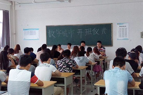 9月3日,济南鸿清动漫制作有限公司专家、信息工程学院负责人、数字媒体技术中心骨干教师和2013级数字媒体1、2班全体同学参加了“数字城市”开班仪式。在开班仪式上,信息工程学院负责人提出了“就业提升品质,行动改变命运”的要求,让学生珍惜机会,好好学习。济南鸿清动漫制作有限公司经理许红青看到学院这么好的学习条件,呼吁同学们要带着感恩的心去学习。