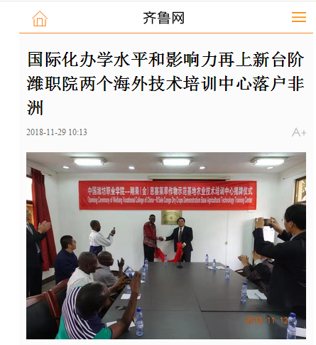[齐鲁网]国际化办学水平和影响力再上新台阶 潍职院两个海外技术培训中心落户非洲-潍坊职业学院