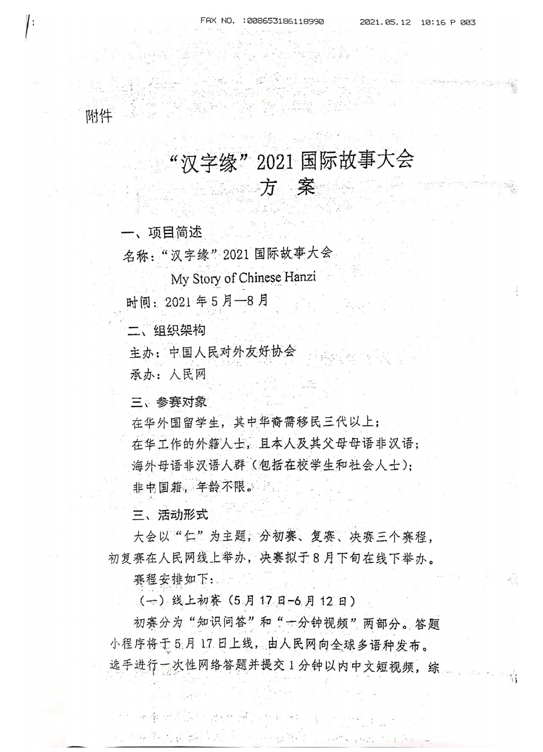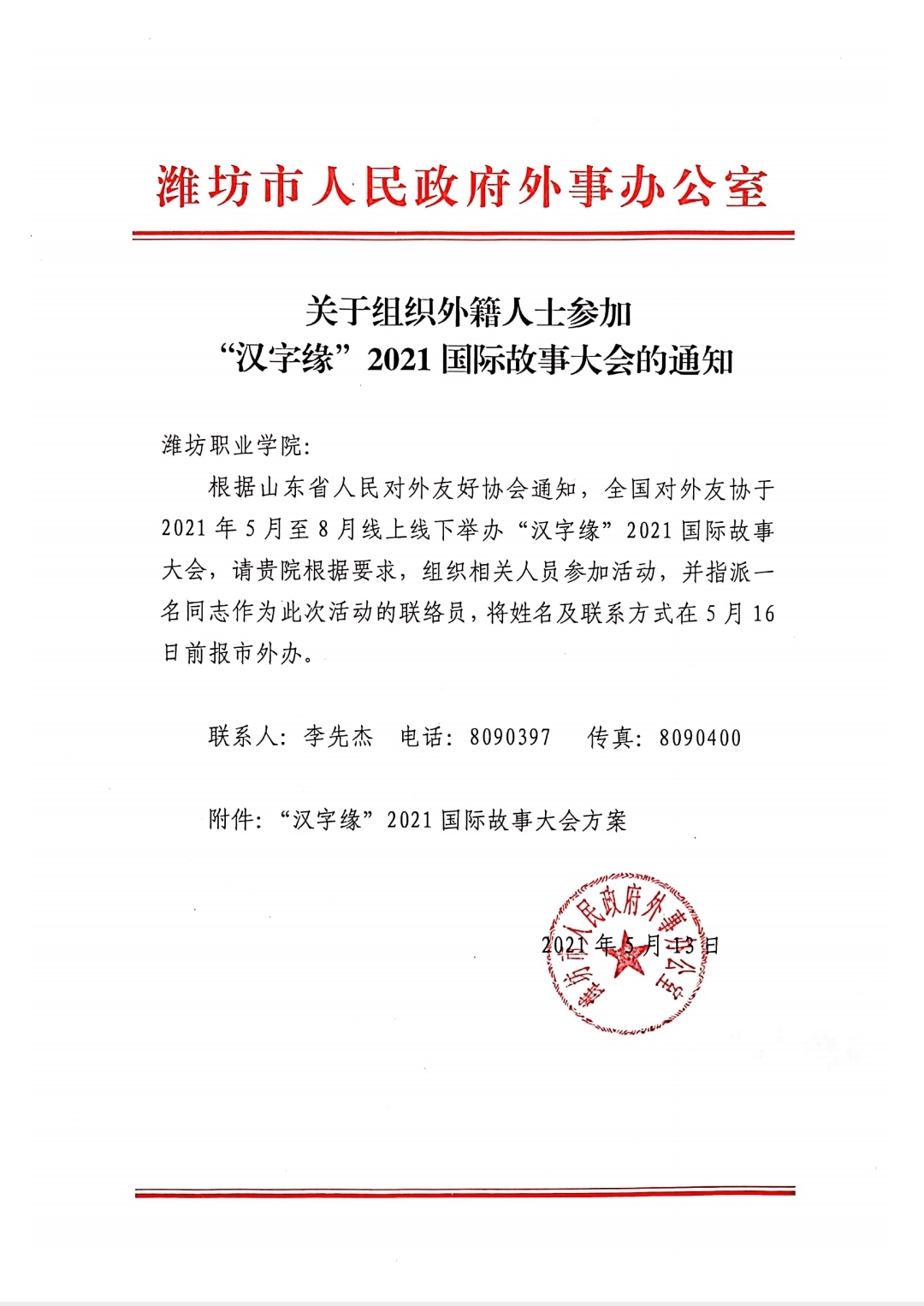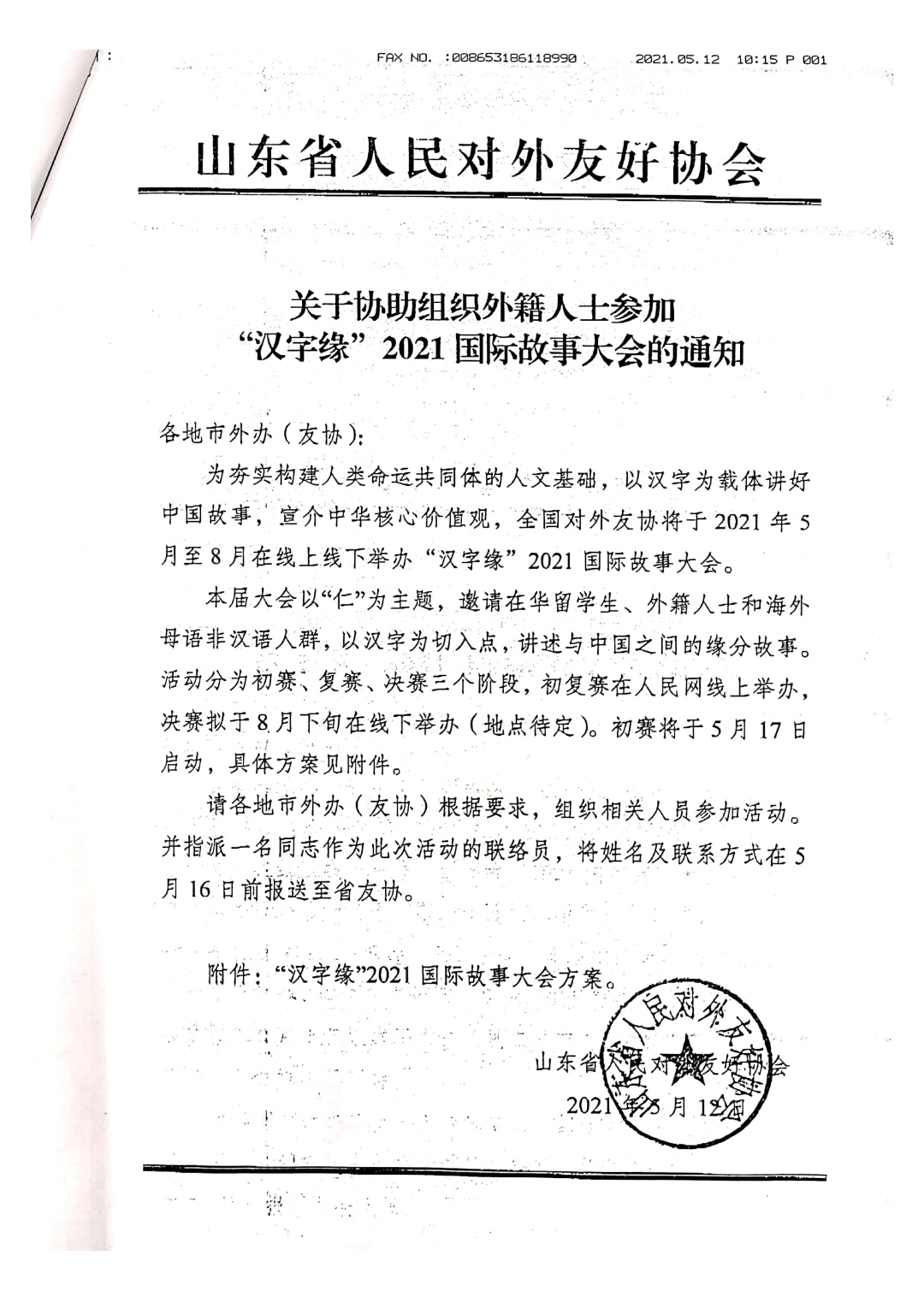 关于组织外籍人士参加“汉字源”2021国际故事大会的通知