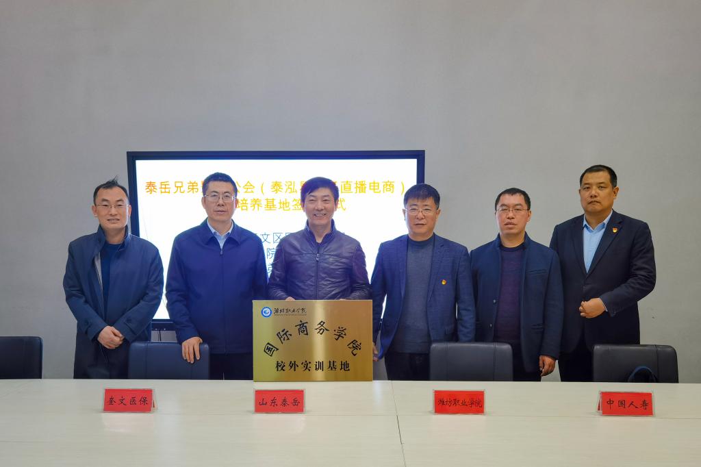 校企三方围绕服务潍坊区域经济发展、产学研合作及学生实习就业等方面进行了深入地交流座谈,对于进一步强化校企深度合作和产教融合等方面提出了具体意见和建议,达成共识。洽谈结束后,我院与山东泰岳兄弟影视有限公司、中国人寿奎文支公司签署了校企合作协议,进行了校外实训基地授牌。