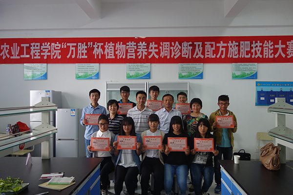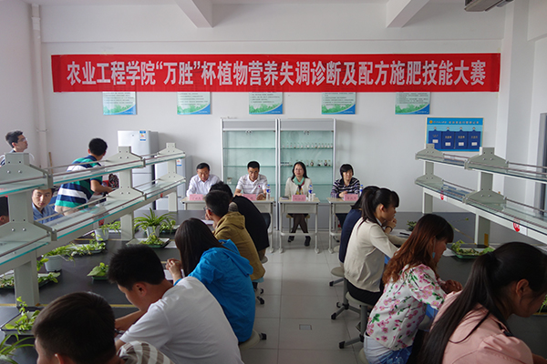 5月14日,农业工程学院“万胜杯”植物营养失调诊断及配方施肥技能大赛在滨海校区沐泽楼园艺技术综合实训室举行。教务处与农业工程学院主要负责同志、潍坊万胜生物农药有限公司人员与农业工程学院部分师生参加了大赛开幕式。