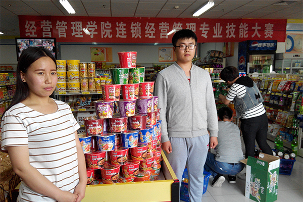 连锁经营管理专业技能比赛在滨海校区中百连锁超市(潍职店)举办。本次比赛设立门店商品展示与陈列、商品保鲜度测算与管理两个赛项,旨在考察学生在连锁门店运营管理中促销商品的摆放、整理、归类、陈列美感设计等方面的实践应用能力,推进校企共建基地在专业技能训练中的实践作用。同学们参与热情高,将课程学习应用于门店运营系列活动当中,特别是门店陈列设计作品获得老师们的一致肯定。