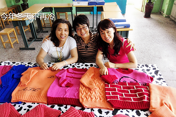 中专部女职工爱心编织为藏区儿童送温暖