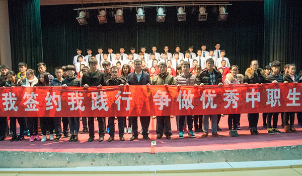 为培育和践行社会主义核心价值观,引导中职生养成良好行为习惯,11月26日,中专部举行中等职业学校学生公约签约仪式,2015级中职学生代表参加。