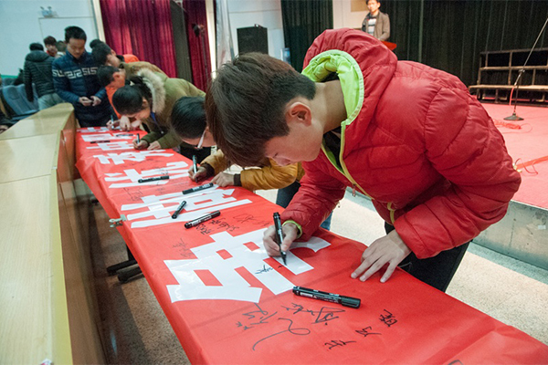 活动现场,同学们郑重地在横幅上签下了自己的名字。他们表示,在横幅上签上了名字,就等于签下了一份承诺,自己在今后的学习生活中,一定按照校纪校规严格要求自己,信守对学生公约的庄严承诺,争做一名优秀中职生。(任怀青供稿)