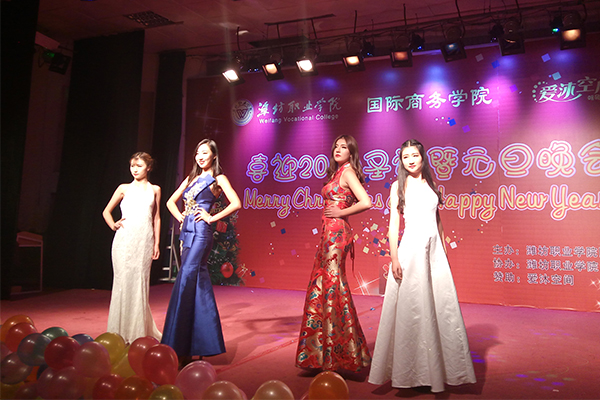 晚会由激情四射舞蹈《This is war》开场,将观众们带入激情平安夜。随着中、英、韩三语主持人盛装登场宣布晚会开始,《黑色幽默》、《外文歌曲串烧》等歌曲为大家带来一场音乐盛宴;舞蹈《Luv》、《舞蹈串烧》等,带领大家感受现代舞的激情四射;由国际教育学院的留学生代表带来的舞蹈《浪漫华尔兹》将晚会带入了一个高潮;朗诵《少年中国说》展现了当代大学生对于青春的热爱与追求;诙谐搞笑的三句半《美丽校园》表达了潍职学子对学院的热爱之情;精彩的礼仪操表演《礼仪伴我行》,让观众席发出阵阵惊呼与赞叹;幽默风趣的小品《皇帝选妃》、《抢劫》让现场观众笑声不断;《Fashion Show》走秀节目在轻松的氛围中展现着学生们的青春活力;在游戏、抽奖环节中,同学们积极参与,认真比赛,台上台下连成一片,将现场气氛点燃,精彩一浪接一浪;另有教师子女带来的表演《童趣》让晚会气氛达到了最高潮,成为晚会的点睛之笔。在晚会即将结束时圣诞老人也出现在舞台上为观众送上了礼物。