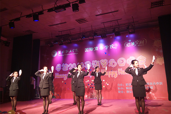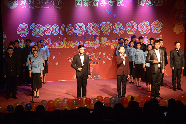 12月24日晚19时,伴随着紧锣密鼓的筹备、热情洋溢的动感音乐,国际商务学院“喜迎2016圣诞暨元旦晚会”在奎文校区16号楼报告厅举行。学院副院长毕建华、纪委书记李瑞昌、各职能部门及二级学院负责同志与国际商务学院全体师生共同观看了晚会。