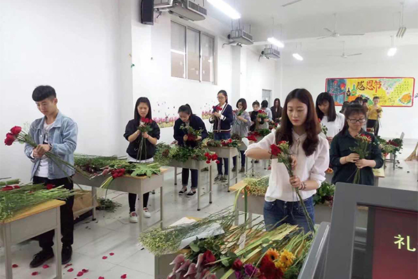 在老师的指导下,同学们将一朵朵零散的花朵包扎成美丽的花束,每朵花、每片叶都赋予了特殊的含义。比赛大大激发了同学们的学习兴趣,提高了同学们的审美能力,同时进一步培养了同学们的动手操作能力,为学生专业技能提高搭建了良好的平台。(张文静供稿)
