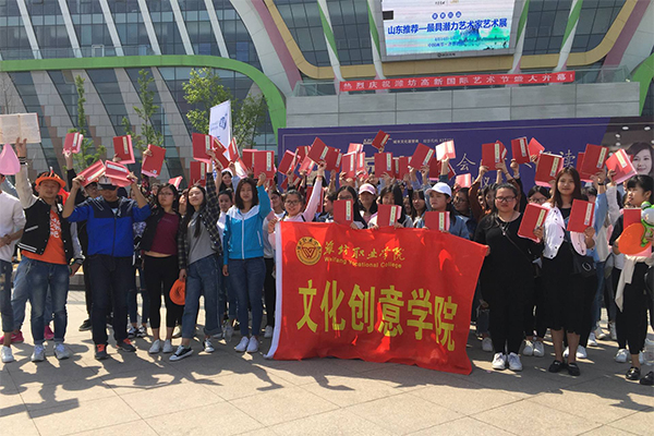 值世界读书日来临之际,4月23日上午,文化创意学院100余名学生到潍坊市人民广场参加了“京广读运会·千人诵读”活动。
