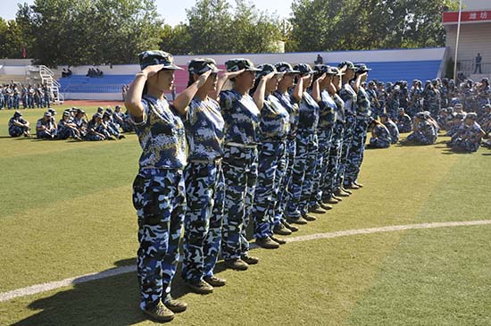 9月1日新生开学典礼暨军训动员大会结束后,我院2014级新生军训随即拉开了帷幕。绿茵场上、白杨树下,一支支身着崭新绿军装的队伍在教官的指挥下,脚步阵阵,口号声声,格外威武雄壮。一张张略显稚气的面孔,此时显得更加硬朗俊秀。校园军营演绎别样的精彩,军训磨练意志,凝聚力量,它将成为同学们一生中的宝贵财富。让我们聚焦这里,记录下同学们青春靓丽的身影,共同感受校园新生活的时代气息。