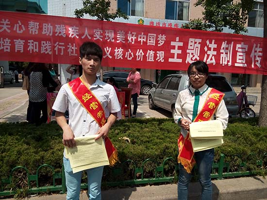 5月18日,经营管理学院志愿者服务协会的同学到潍坊市残疾人联合会开展志愿服务活动。