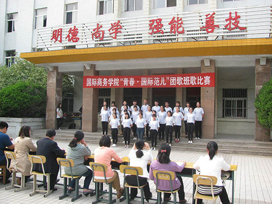 4月21日下午,国际商务学院举行“青春·国际范儿”团歌班歌比赛。2013级全部班级及2014级春季海乘班参加了比赛。评委由该院党支部书记、团总支书记、专职辅导员以及全体班主任担任。