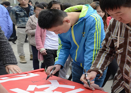 3月25日,中专部组织举行了“远离吸烟,珍惜健康”禁烟签名活动。中专部主要负责同志,安全保卫处、公寓管理中心有关人员,奎文东校区全体师生参加了活动。