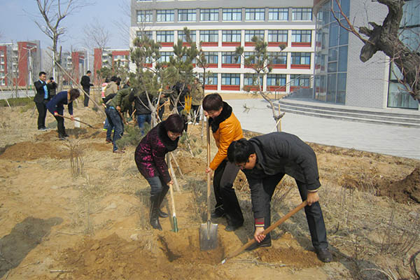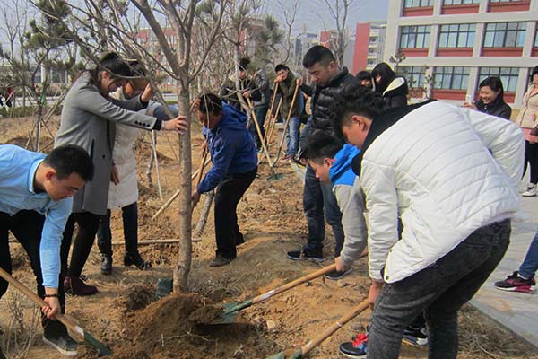 3月5日,经营管理学院的负责人及全体辅导员带领近百名学生在滨海校区开展了植树活动。从挖坑栽树到铲土浇水,每一个动作都象征着大家对绿色的希望。经过努力,两卡车樱花树苗很快就在滨海校区安家落户,给整个校园带来了春天的气息。(李雪琳供稿)