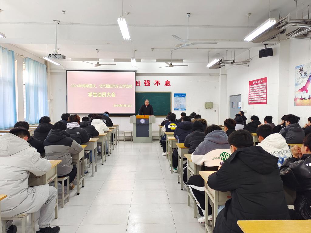 为切实做好与潍柴雷沃、北汽福田山东多功能汽车厂的学生工学交替工作,1月15日下午,汽车工程学院召开2024年潍柴雷沃、北汽福田工学交替学生动员大会,汽车工程学院分管校企合作工作负责人及产学合作办公室负责老师作动员讲话,汽车工程学院50余名学生参加大会。