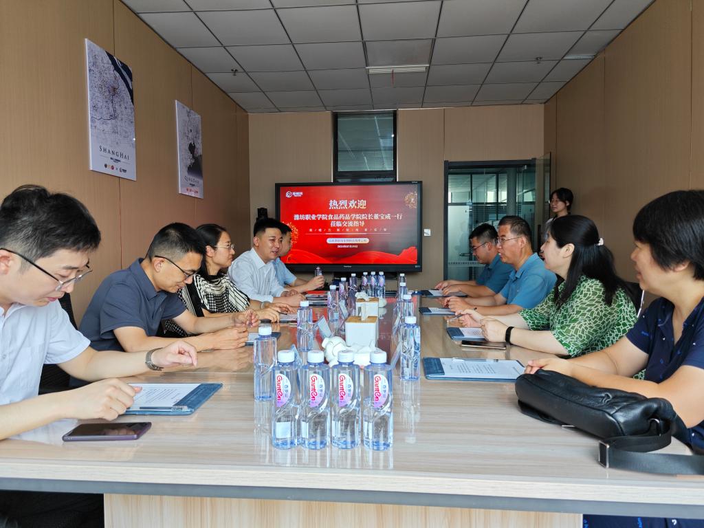 活动过程中,食品药品学院主要负责同志介绍了相关专业的实训室建设、人才培养、办学成果及学生实习就业等情况。山东新航线生物科技有限公司董事长王国强介绍了企业发展、主营业务及用人需求等,带领团队参观了具体工作岗位及实际情况,并对学院学生来企业实习表达了热烈的欢迎,愿意进一步深化与学院的产学研合作,提供更多优质的实习岗位和就业机会。随后,校企双方详细讨论了学生的实习岗位设置、薪资待遇以及职业发展规划等具体问题,就开展产学研融合达成合作意向。