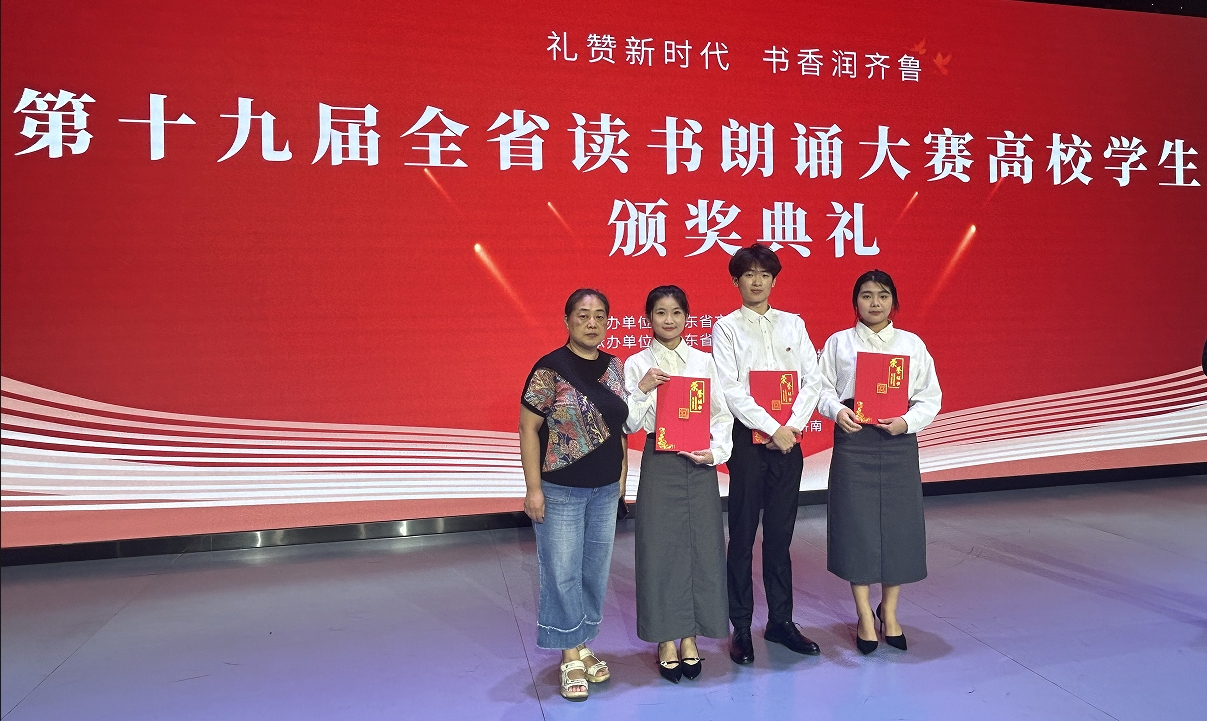 近日,由山东省文化和旅游厅主办,山东省图书馆、山东省高等学校图书情报工作委员会、山东师范大学图书馆联合承办的“礼赞新时代·书香润齐鲁”第十九届全省读书朗诵大赛高校学生组决赛暨颁奖典礼在山东师范大学成功举办。我院清韵悠扬诵读社团学生作品《百年交响》荣获三等奖。