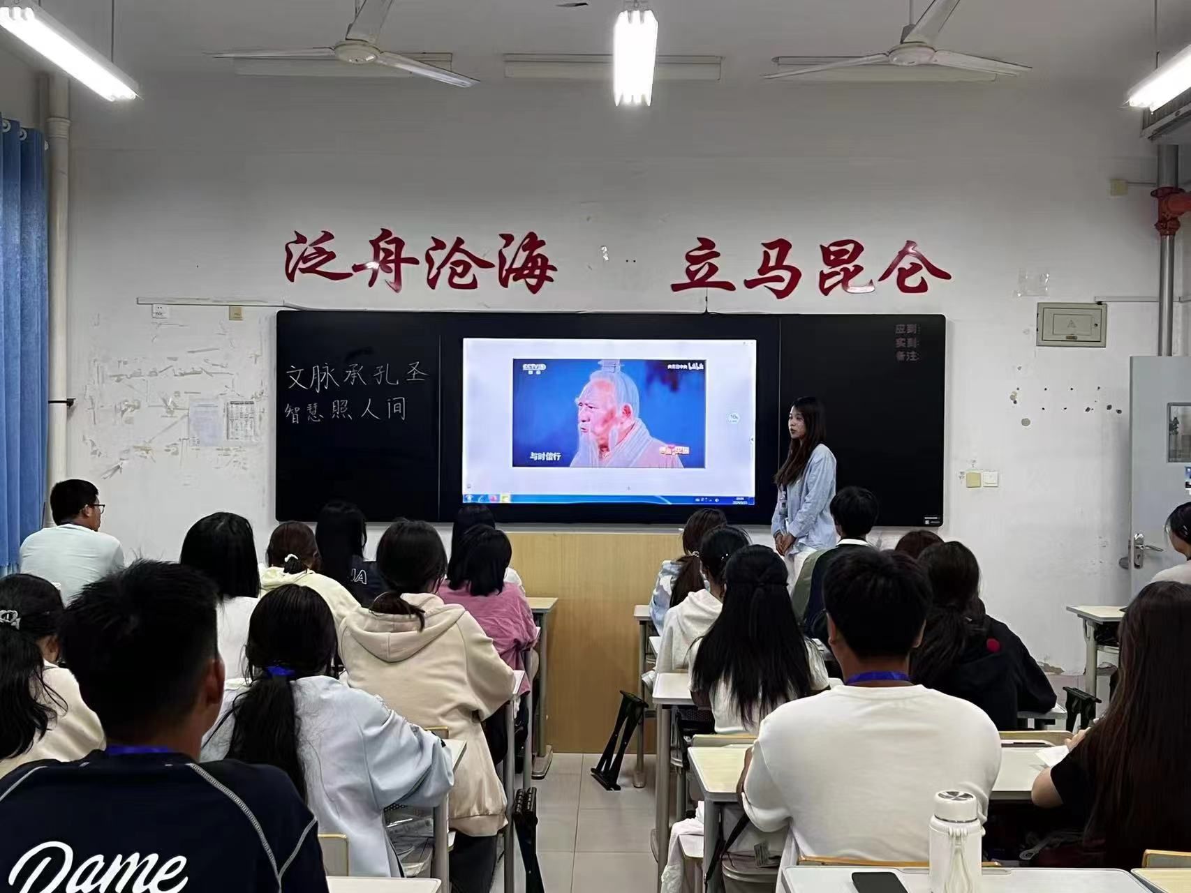 团课上,各团支部组织观看了《典籍里的中国-论语》,视频以孔子自述和现代人亲历为切入点,带领同学们以新颖的方式了解孔子,学习儒家文化,缅怀与致敬先贤。随后,各团支部组织了孔子故事演绎、《论语》思想辩论等活动,带领同学们以生动有趣的方式学习中华传统文化,在耳濡目染中感受到中华文化的博大精深与独特价值。