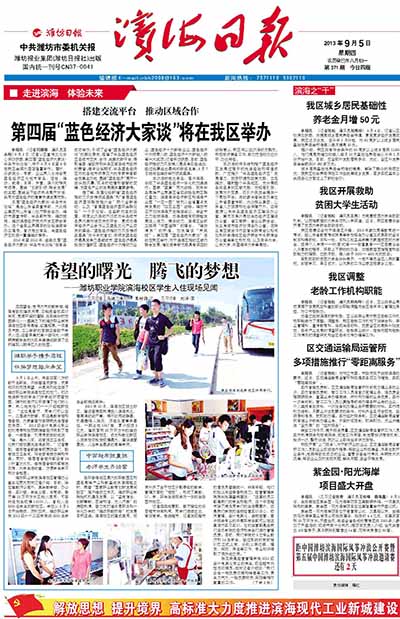 远远望去,宏伟大气的教学楼,错落有致的建筑布局,功能完备的实训车间,宽阔平坦的道路,五彩缤纷的校园绿化……盛装之下的潍坊职业学院滨海校区彩带高挂,红旗招展,一派喜庆气氛,正以崭新的面貌迎接着数千莘莘学子。迎着早晨的第一缕阳光,几辆满载学生的大巴车缓缓地驶进了这所全体潍职人期待已久的校园。