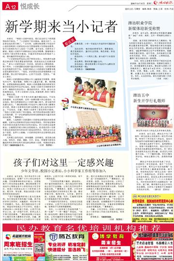 本报讯9月4日,潍坊职业学院喜迎2016级“3+2”本科、高职、五年一贯制新生报到入学。