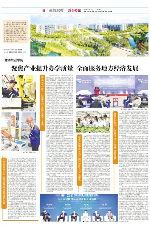 [潍坊日报]潍坊职业学院:聚焦产业提升办学质量 全面服务地方经济发展