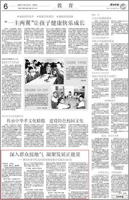 学院先后开展了“三爱三节三倡导”、“企业家进校园”、“企业文化进课堂”系列主题教育活动,挖掘选出了“富民兴鲁”劳动奖章获得者等一批先进典型。大力开展“关爱职工生活”行动,帮助解决家庭经济困难职工生活问题。学院组建的农林科技创新服务团队,将教育实践活动成果体现到服务“三农”上,并深入一线开展技术指导,解决技术难题和新产品研发80余项,传授实用先进技术100多项,赢得了社会的广泛赞誉。