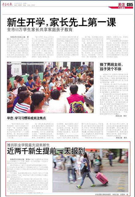 w优德w88:[齐鲁晚报]潍坊职业学院最先迎来新生