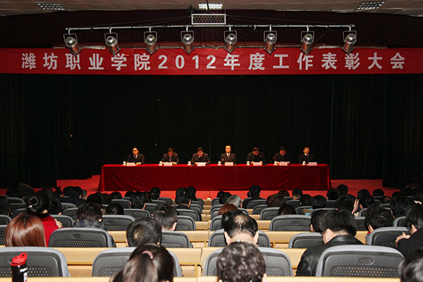 潍坊市政府党组成员、学院党委书记陈仁杰在大会上讲话。他简要回顾了学院2012年度的工作,指出,2012年是学院发展史上跨跃发展的一年,是学院各项事业抓住机遇,奋力开拓,实现多项突破,取得骄人成绩的一年。全院上下紧紧围绕学院党委行政工作部署,团结合作,拼搏实干,奋勇争先,各项事业实现了全面发展。