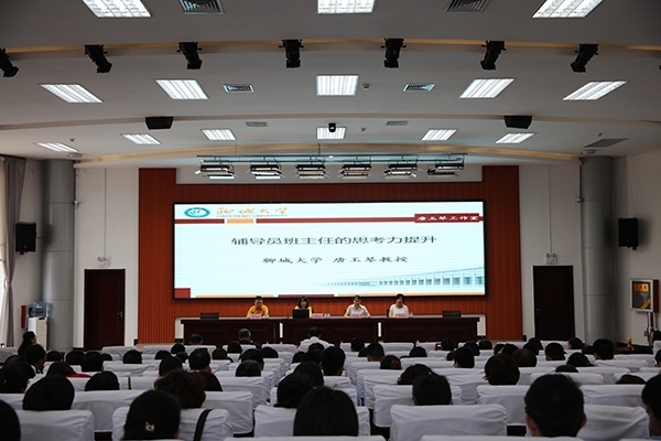 为继续深入贯彻落实全国高校思想政治工作会议和全省高校思想政治工作会议精神,进一步加强我院辅导员班主任队伍建设,6月8日下午,学院邀请山东省高校辅导员名师工作室“唐玉琴工作室”团队成员开展培训交流活动。学院党委副书记宋桂言出席活动,各二级学院(部)分管学生负责人、辅导员办公室主任、全体辅导员班主任,团委学生工作处负责人及全体工作人员参加活动。