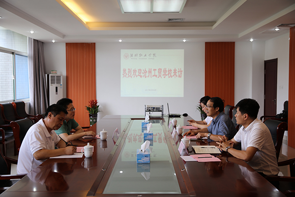 近日,沧州工贸学校校长谷宝国一行3人来我院考察交流。副院长赵君堂接见了客人。招生就业处、现代服务业学院相关负责同志参加活动。