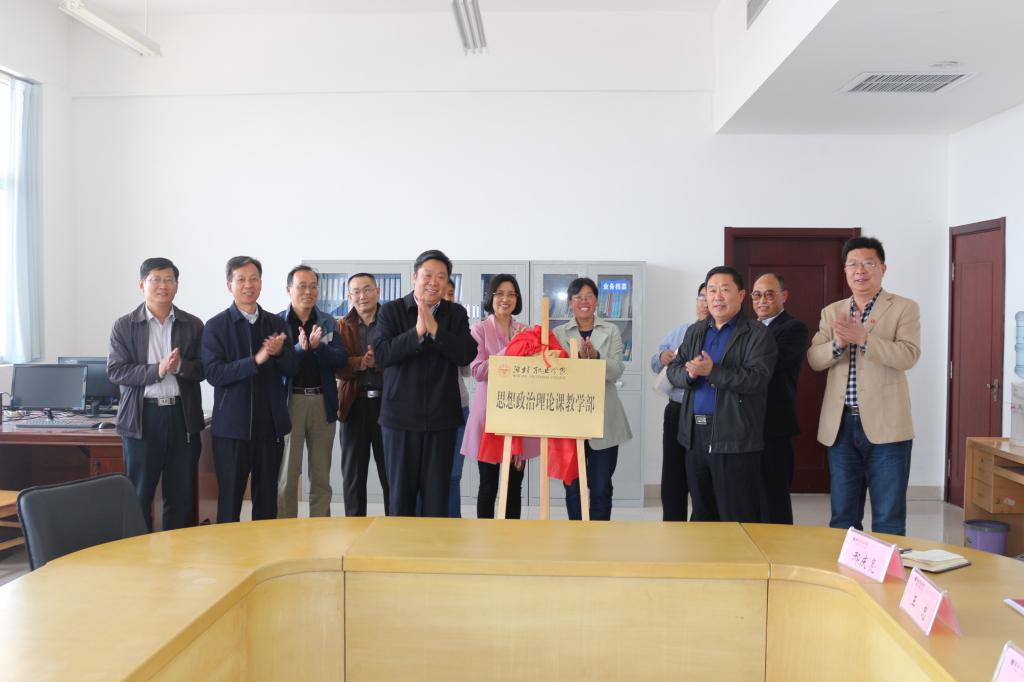 调研结束后,张洪全为调整组建的思想政治理论课教学部揭牌。(邢庆亮供稿)