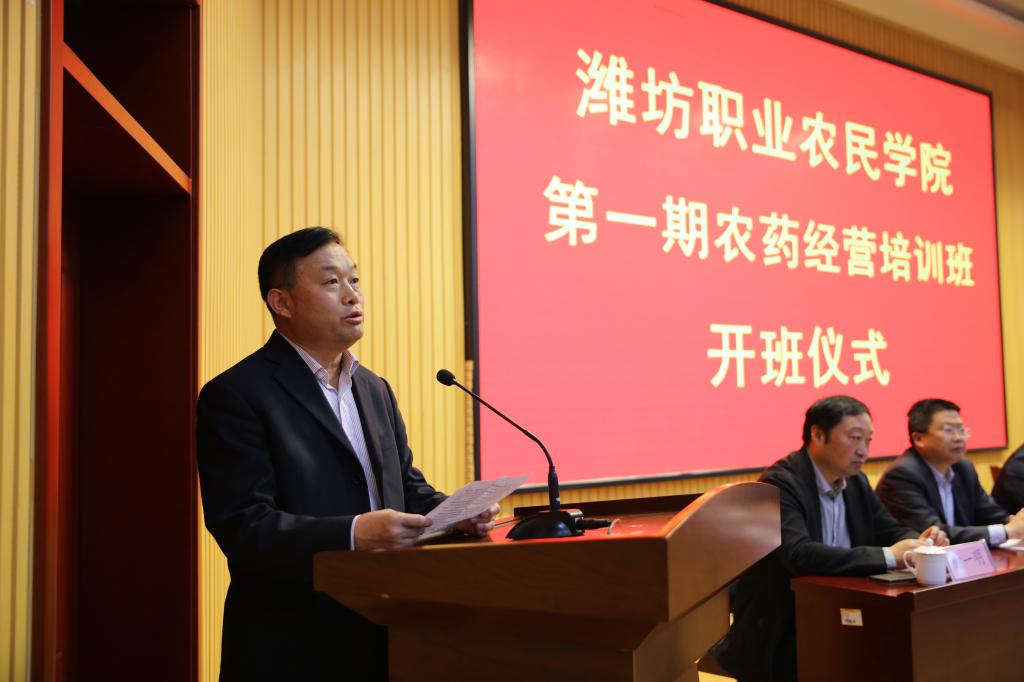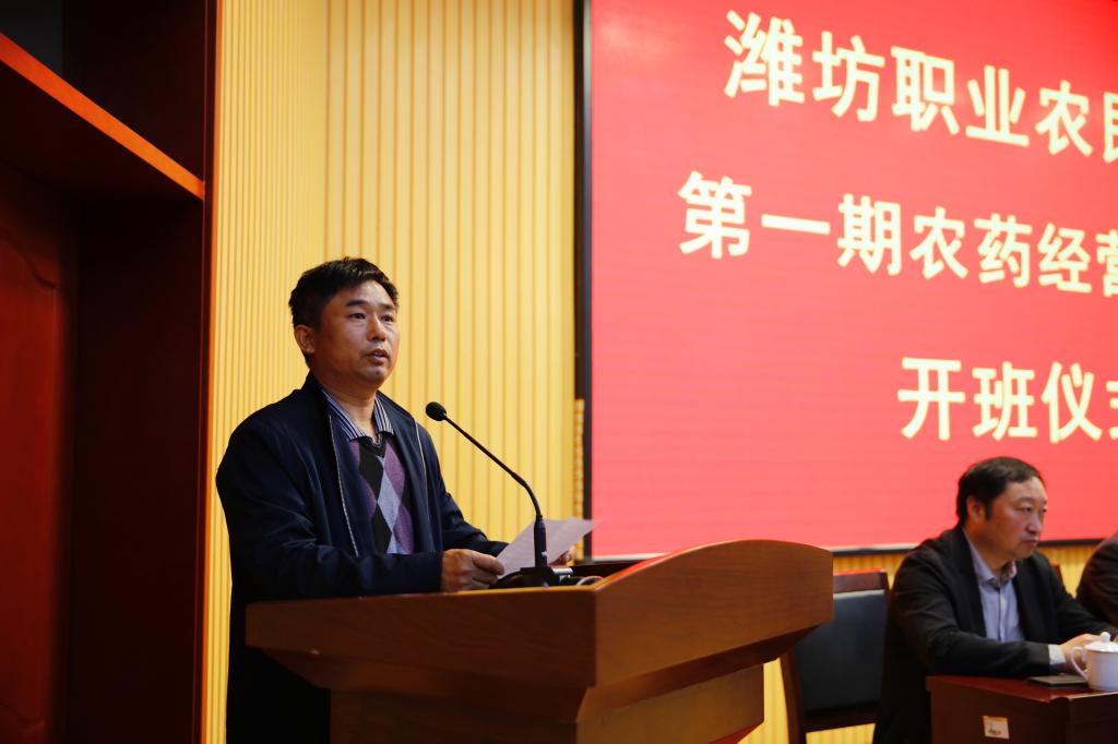 4月19日,潍坊职业农民学院第一期农药经营培训班开班仪式在我院奎文校区举行,学院党委书记张洪全出席仪式并讲话,山东省农业专家顾问团农产品质量分团团长杨理健、潍坊市农业综合执法支队支队长凌云川出席仪式,学院副院长赵君堂主持仪式,昌邑市、坊子区农业局负责同志,学院继续教育学院负责同志及160余名学员参加开班仪式。